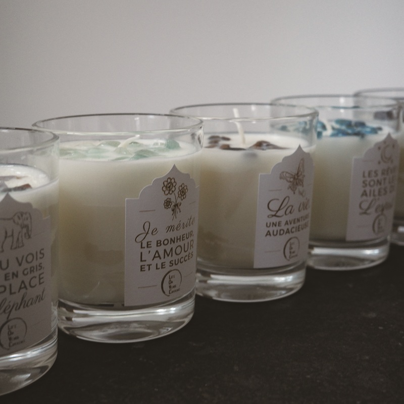 Each candle blends fragrance from Grasse, France, with the energy of natural stones.