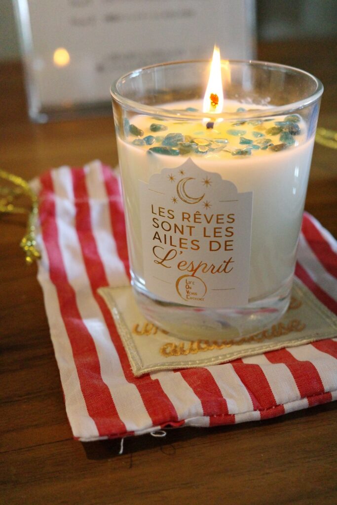 Each candle blends fragrance from Grasse, France, with the energy of natural stones.