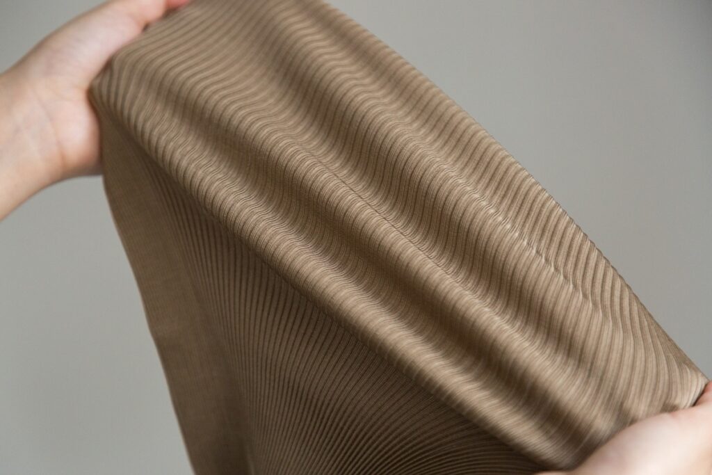 Rib knit is known for its natural elasticity, allowing it to move with the body without restriction. It does not cling or constrict, but instead follows the body’s movements with ease. The feeling is close to that of a second skin — light, comfortable, and reassuring.