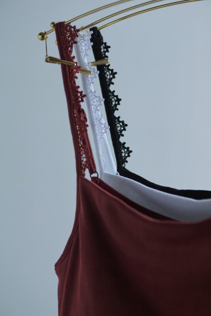 そして今回、お客様から届いた「一枚で着られるパッド付きキャミソールが欲しい」という声から、新作「コットンフライス パッド付きキャミソール」「コットンアコーディオン(リブ)パッド付ショートタンク」が生まれました。シンプルでゆったりとしたシルエットの中に、肩からそっとのぞく繊細なケミカルレース。シンプルでいて、ほんの少しフェミニン。見せるインナーとしても、日常の装いに静かな華やぎを添えます。