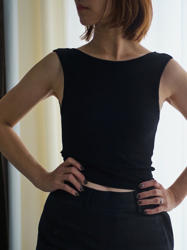AROMATIQUEを代表するコットンフライスキャミソールは、そんなフライスの魅力をもっとも素直に感じられる一枚。余計な装飾をそぎ落とし、素材の美しさとラインのやわらかさを引き立てています。